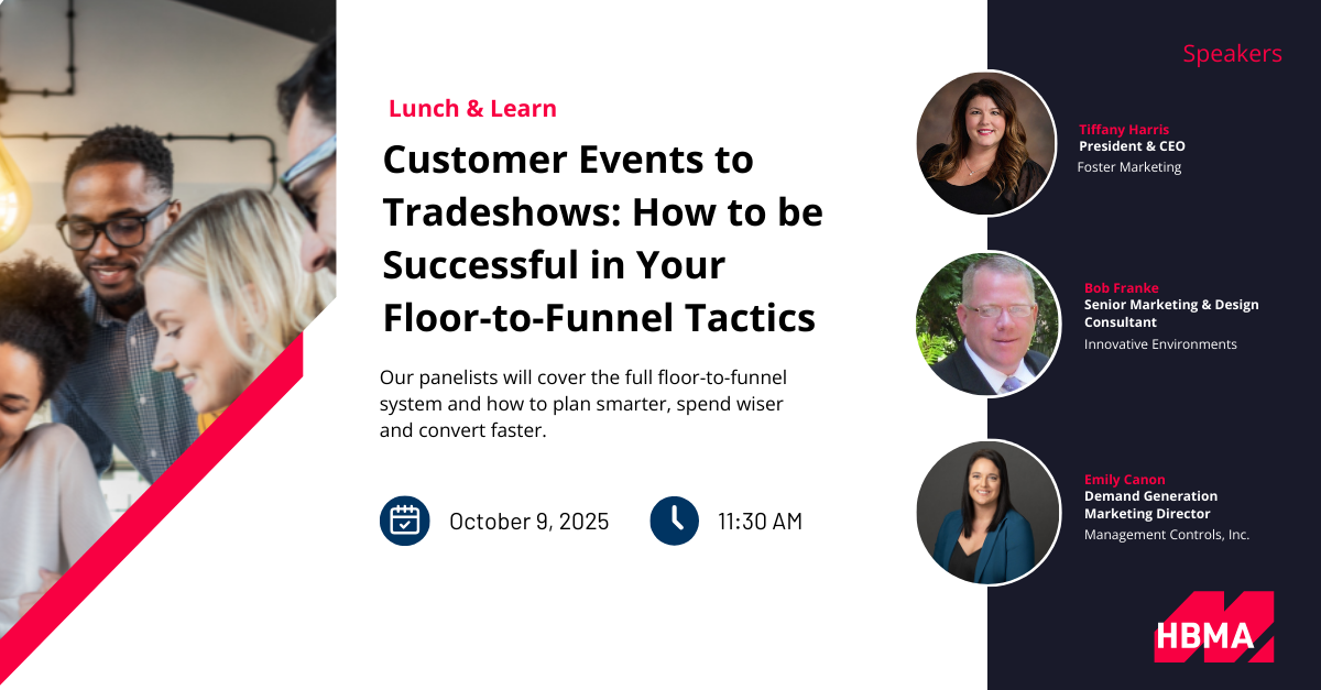 Turn costly events and exhibits into ROI-driven strategies at HBMA’s October Lunch & Learn.